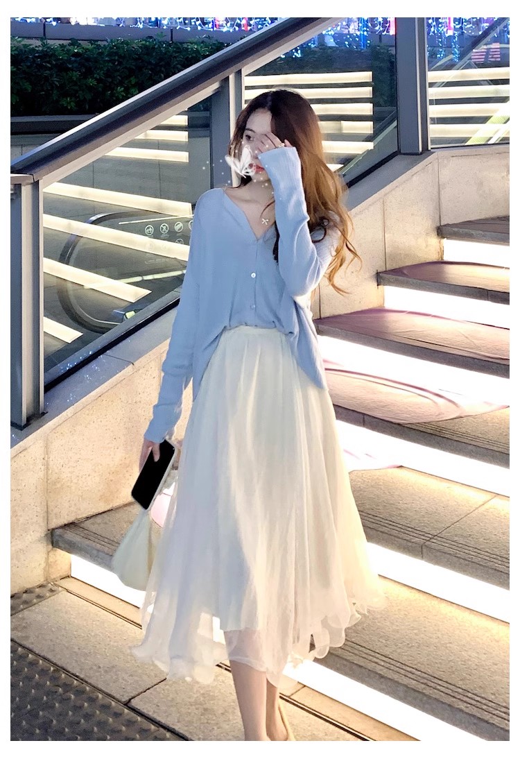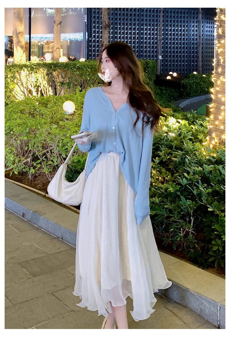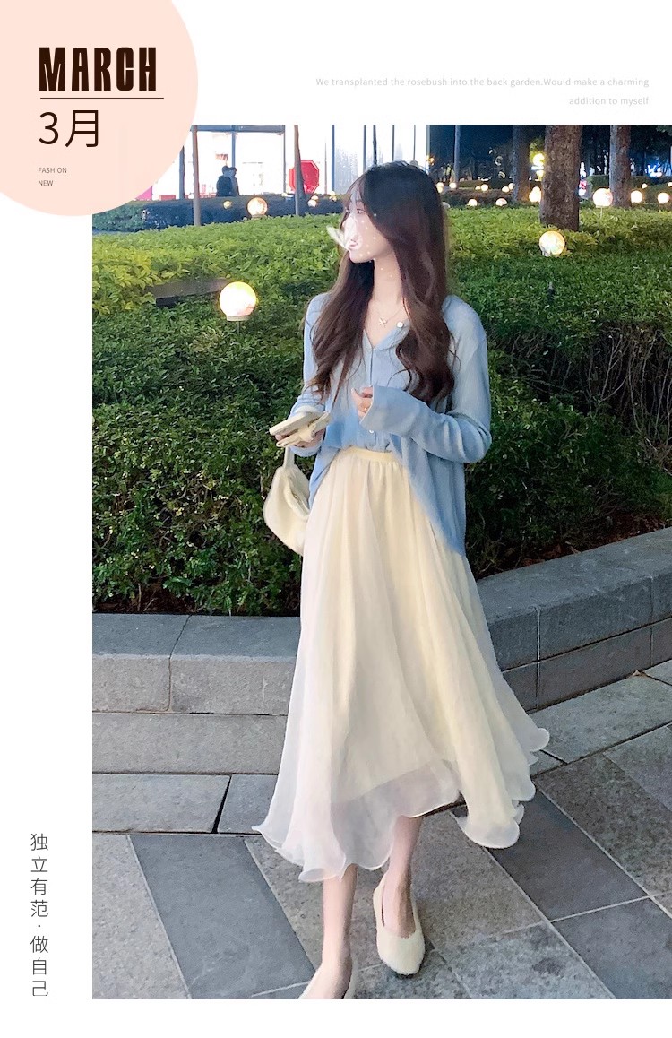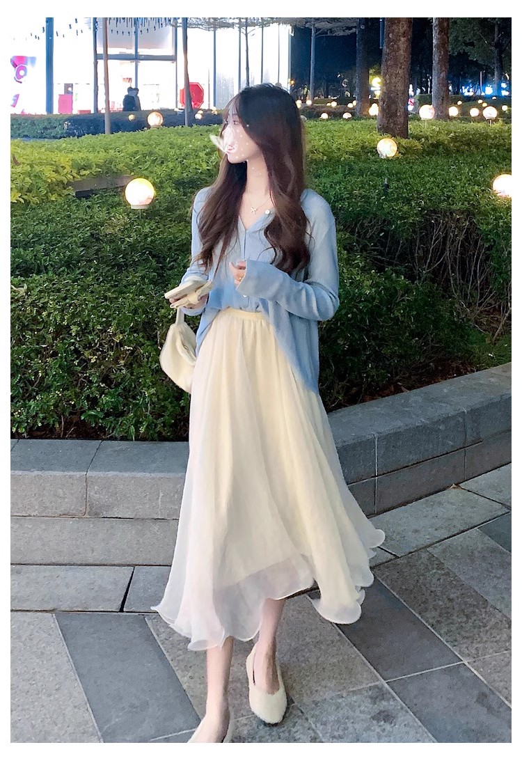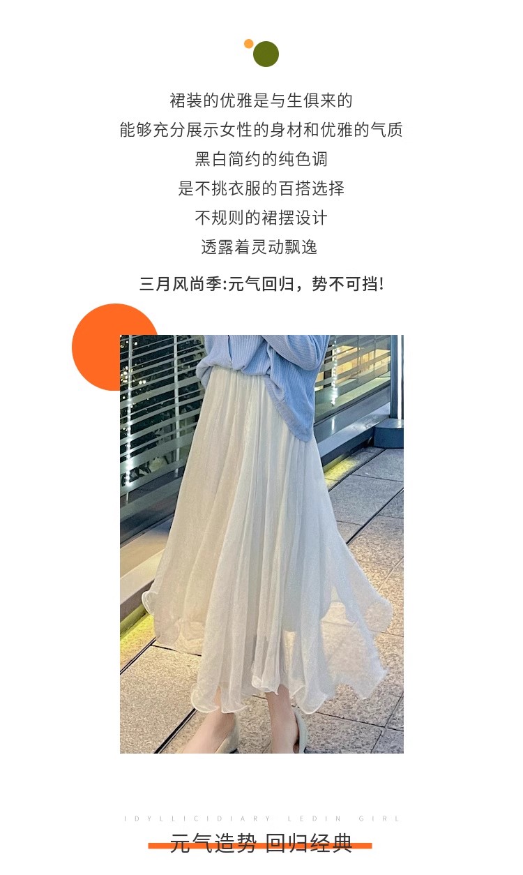 实拍2024年春夏网纱半身裙a字高腰蓬蓬仙女纱裙子不规则半身长裙