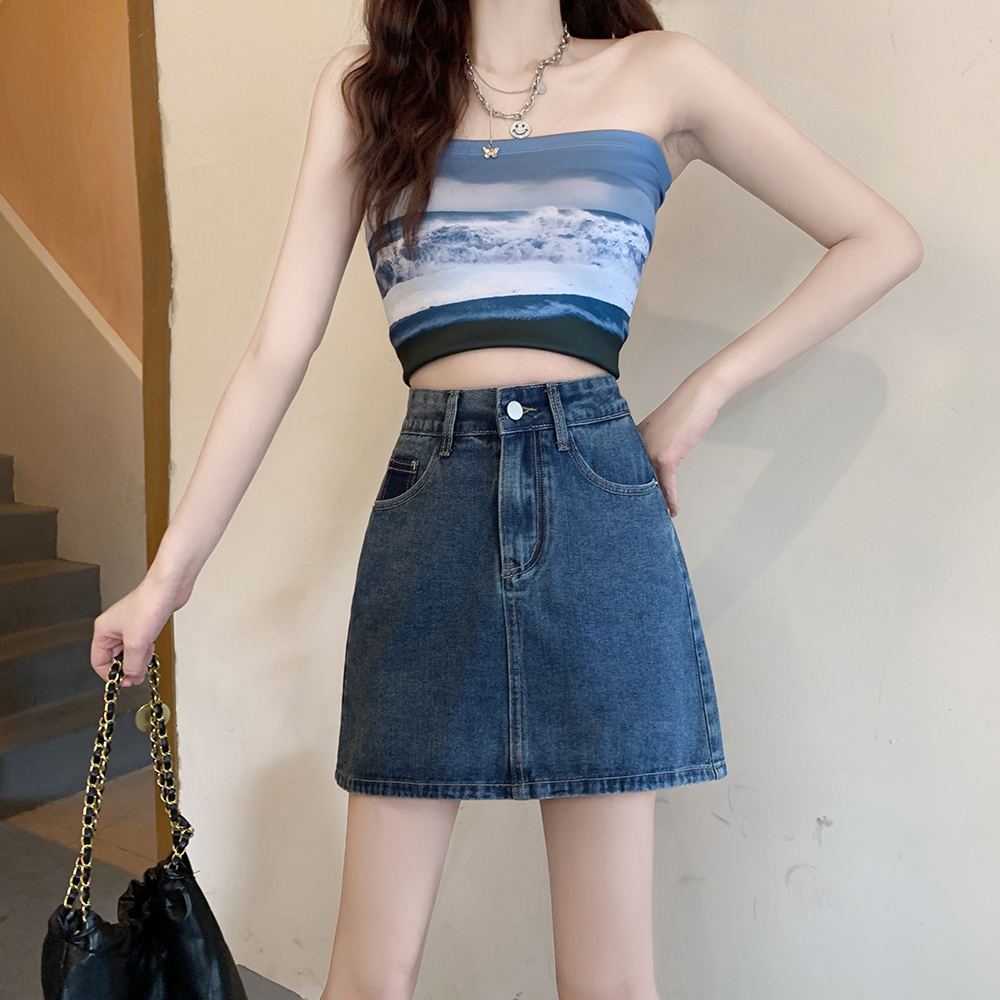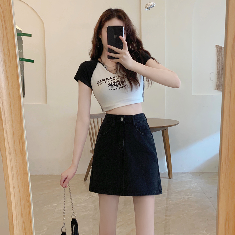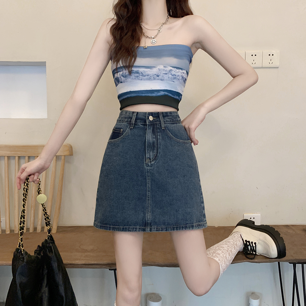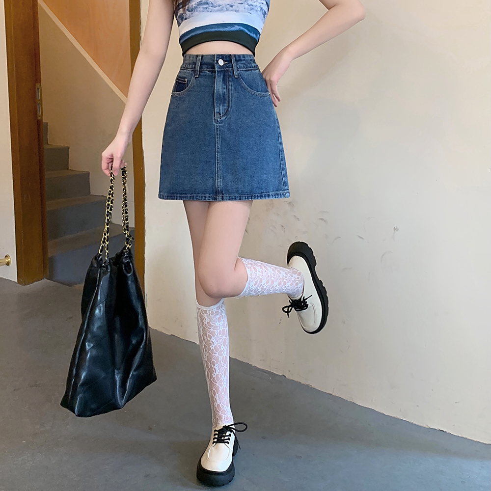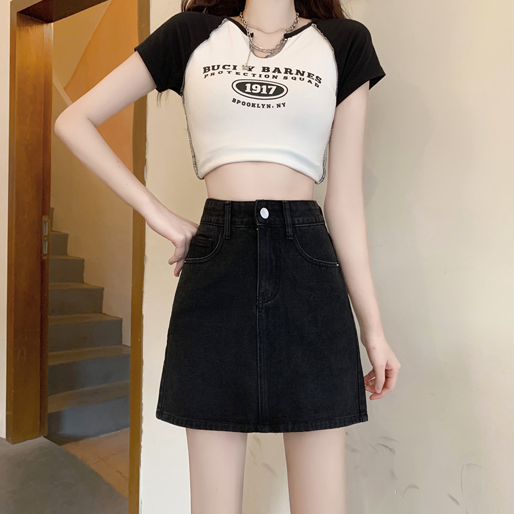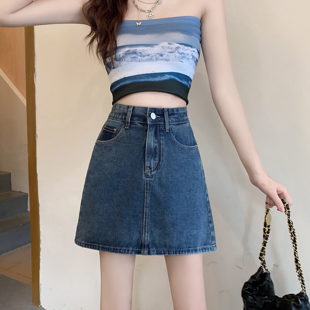 胖妹妹显瘦牛仔半身裙A字裙短裙